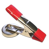 This 4" metal spring clamp features a small magnet attached to the handle of the clamp to hold onto metal surfaces.